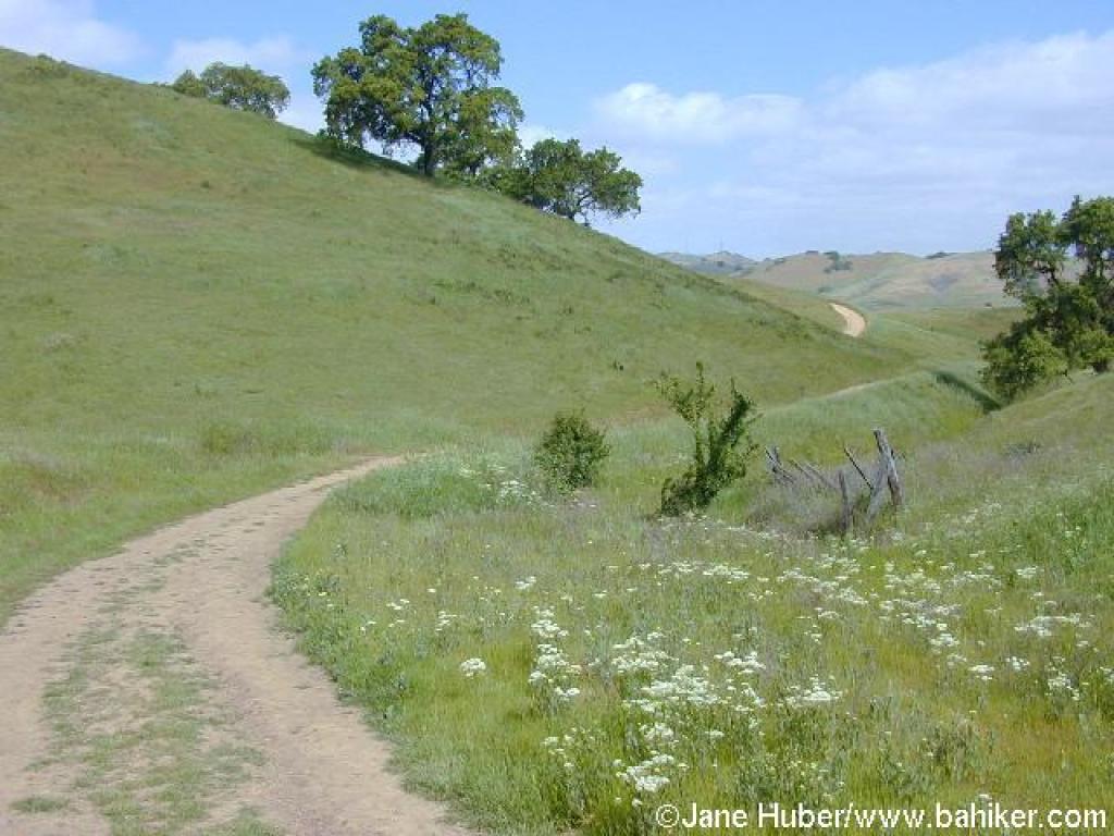 especially from cyclists and dog walkers. The park is open only to equestrians and hikers, a rarity in the south bay. While there is a stable on the park's grounds, I encountered only one equestrian (and one other hiker) on a weekday visit. The trails obviously get more equestrian use on the weekends, and in the winter muddy, rutted trails are a reality. But on a weekday in the dry months, the lonely trails provides ample quiet time for nature study and daydreaming, particularly in the spring, when the park's grasslands are dotted with wildflowers. With a field guide in hand a curious hiker can spend the whole day at Calero identifying and admiring the splendid displays of blooming flowers.
