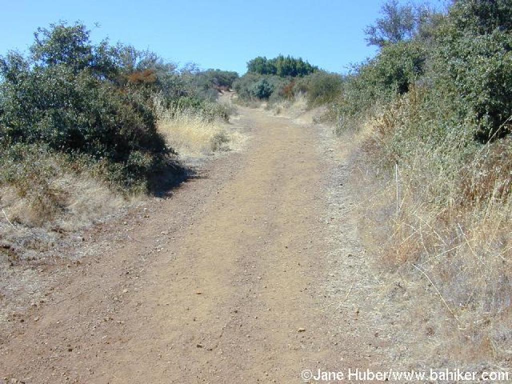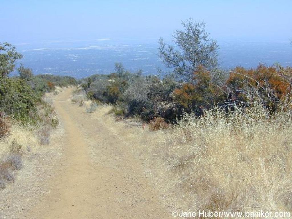 has two very different segments. Although the first mile, on Rhus Ridge Trail, is a bit steep, the initial stretch of Black Mountain Trail is a nicely graded footpath winding through woods and chaparral. Then suddenly, 3.3 miles up the mountain, the footpath widens to fire road width, and shoots nearly straight uphill, with little shade. The ascent is worth it, for the amazing views at the top and the feeling of accomplishment -- an over 2300 foot climb all the way up the mountain!