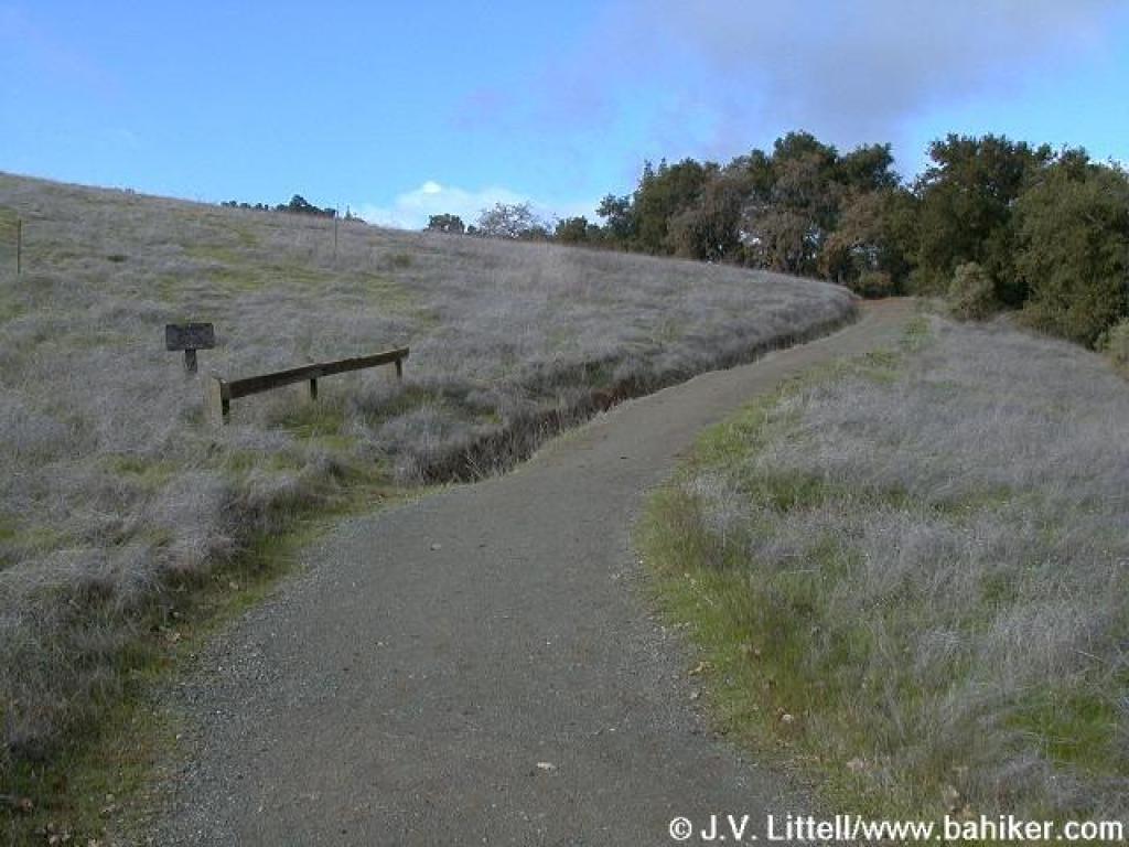 Some tall oaks and buckeyes punctuate the grassland. Where the level trail meets the paved road, at 0.48 mile, cross the road and pick up the trail again on the other side, as the trail skirts a permit-only parking area. After crossing a bridge, the narrow path, separated from the road by an old-fashioned fence, retains an easy grade while cutting through grassland