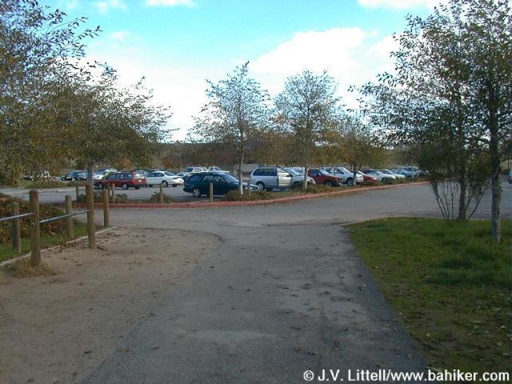For the featured hike, cross the street from the trailhead and go through the gate which marks the start of the trail. Walk on this short connector which edges around a fenced horse