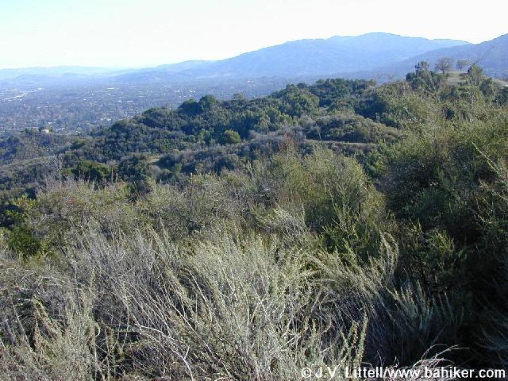 The trail keeps a steady, nearly flat pace, as it cuts through the chaparral. There are nice views north and west. At 2.56 miles, you'll reach a signed junction with Upper High Meadow Trail, an option if you'd like to extend